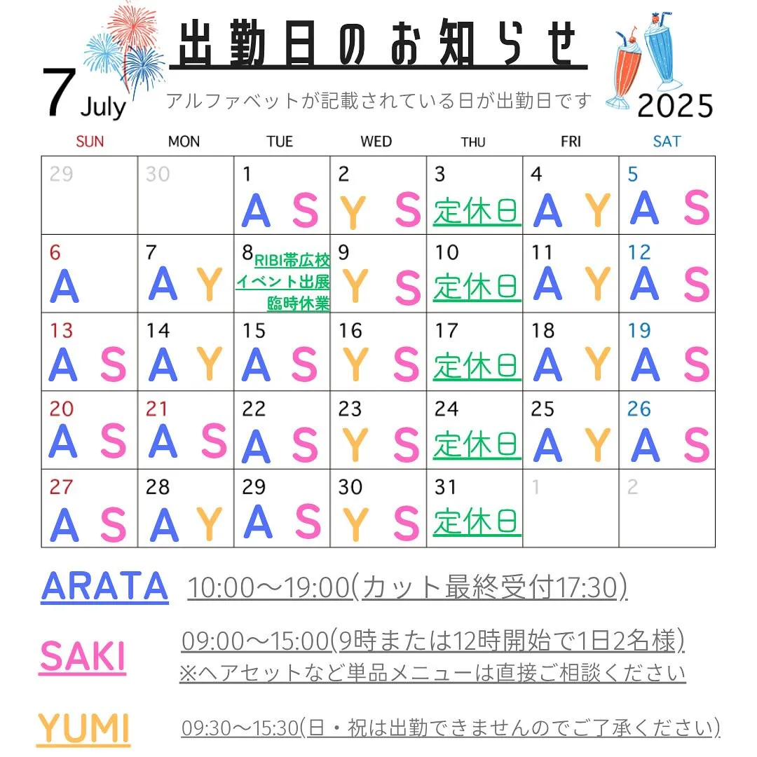 7月も皆様にお会いできることを心より楽しみにしております☺️